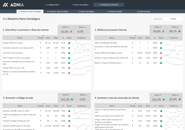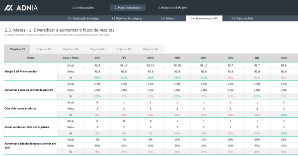 • Estabeleça objetivos estratégicos e indicadores de desempenho para acompanhá-los